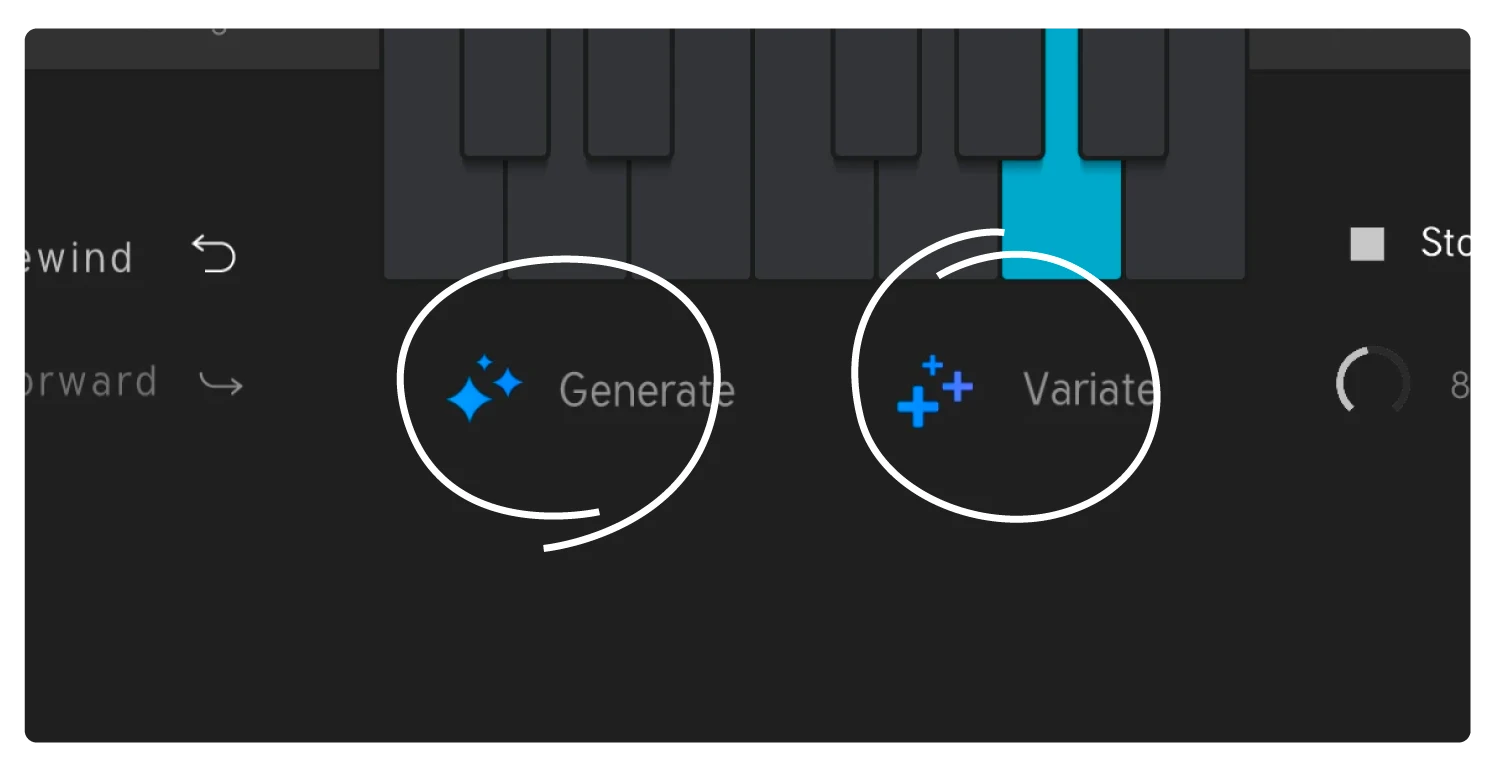 Click on Generate to get a new generation based on the parameters you picked. Once you find something you like, you can click on Variate to create variations for the same rhythm structure (good for consecutive bars to avoid repetition).