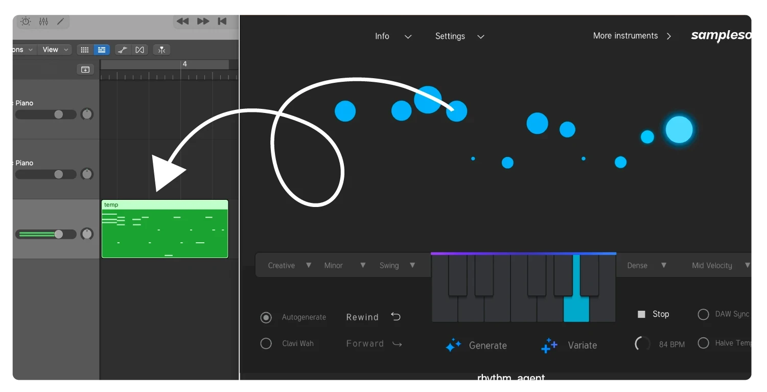 The result is a model capable of generating funky grooves that are not only authentic, but also very creative and interesting. Many of the grooves are already being used in songs by our first beta testers.